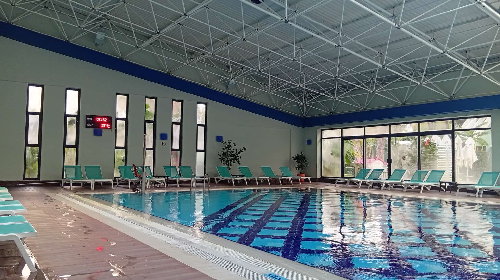 Gemäß den guten Vorsätzen, am nächsten Tag erstmal die örtliche Halle der Qualen und den großzügigen Inndor Pool besucht.